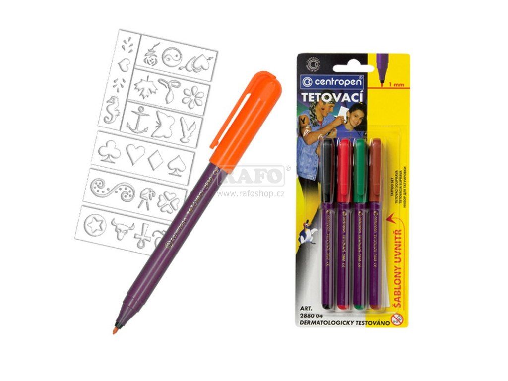 Sada fixů Centropen 2880, 4 barvy tetovací + šablona