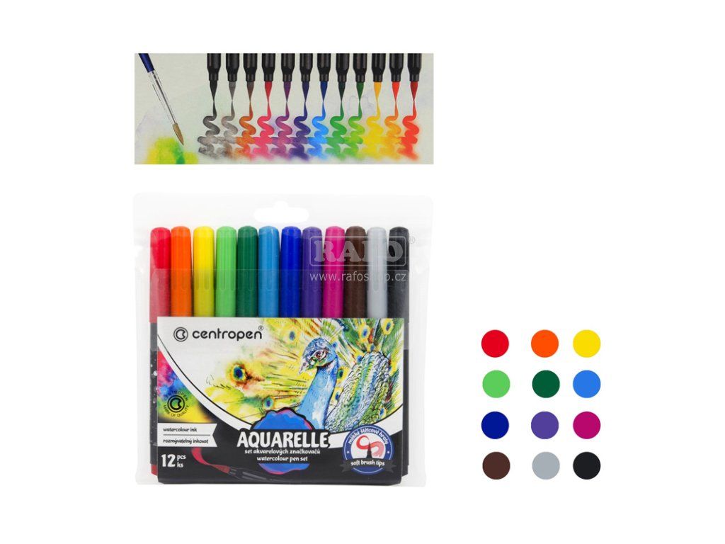 Sada fixů Centropen Aquarelle 8683, 12 barev