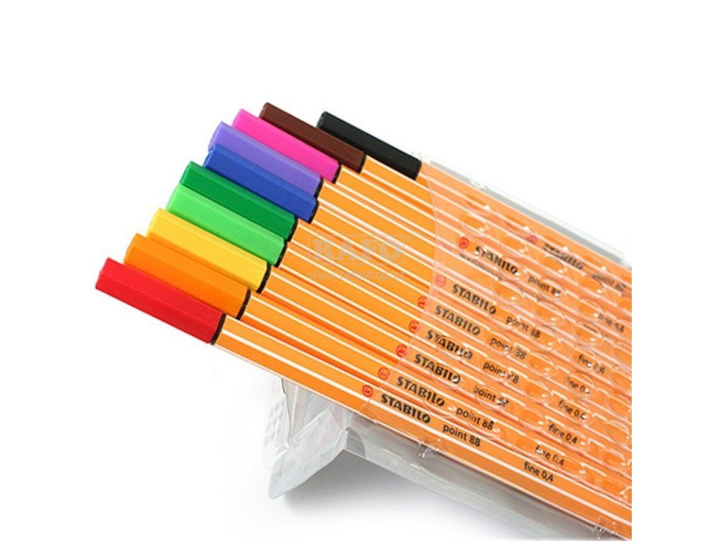 Liner Stabilo Point 88, sada 10 barev. Klasický, dnes již kultovní liner nejen do školy a kanceláře. Nezaměnitelný šestihranný design s bílými pruhy, s hrotem chráněným v kovovém pouzdře zaručuje dlouhou životnost. Inkoust na vodní bázi, dlouhá výdrž bez uzávěru. Ideální pro rýsování a práci se šablonami.Doplňkové parametry
