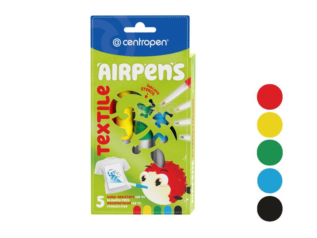 Sada foukacích fixů na textil Centropen 1539, 5 barev+šablona