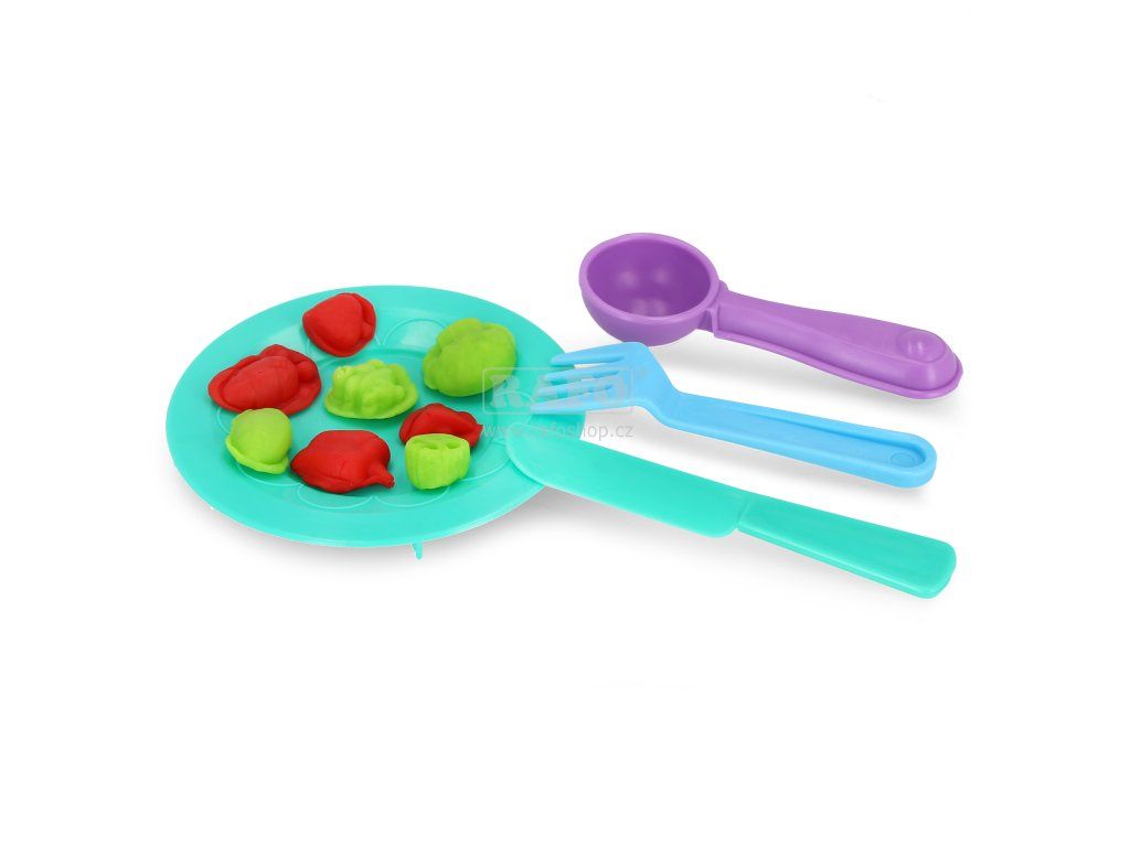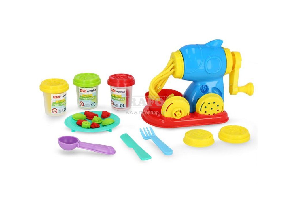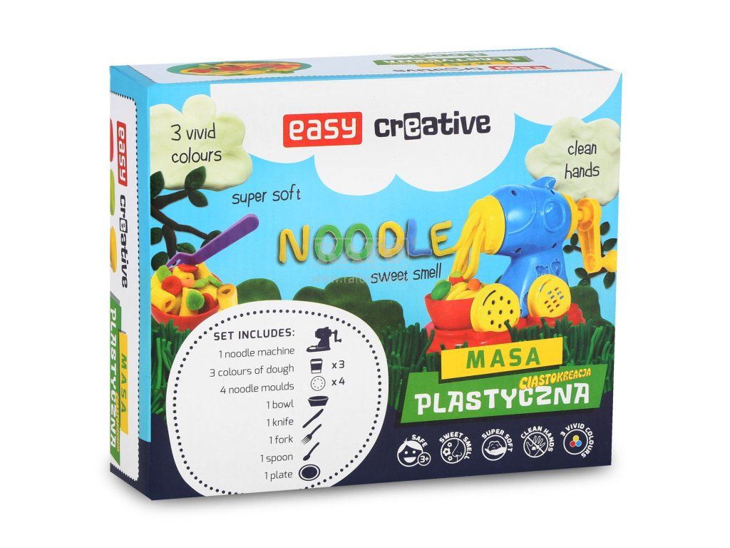 Ukažte svému dítěti neobyčejný, barevný svět. Hra s modelínou pomáhá rozvíjet představivost, kreativitu a manuální dovednosti. Slepování modelů pomáhá utvářet vnímání trojrozměrných postav a také zlepšuje soustředění. Snadno kreativní modelína je pružná, snadno se hněte a příjemně voní. Měkká struktura hmoty je přizpůsobena potřebám menších dětí - příliš rychle nevysychá a není třeba ji násilně hníst. Nelepí se na formičky - lze ji snadno odlepit nebo vytlačit. Směs se při hnětení nedrolí ani neloupe. Sada NOODLE obsahuje: • stroj na nudle • 4 formičky na různé tvary těstovin • lžíci • nůž • vidličku • talířDoplňkové parametry
