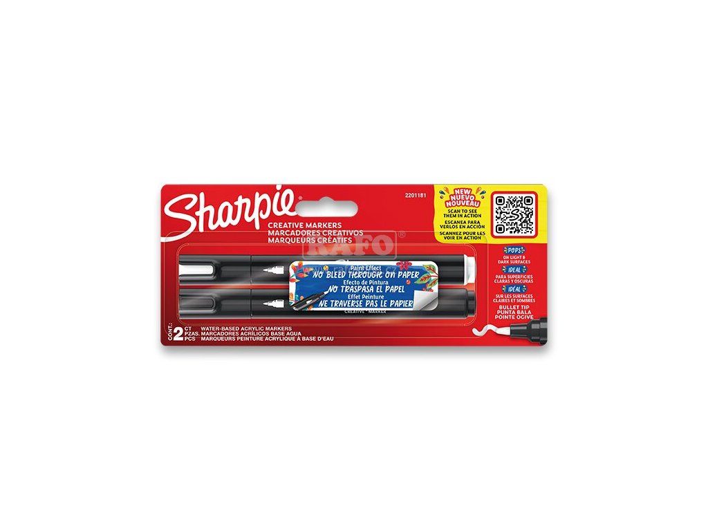 Sada permanentních fixů Sharpie Acrylic Marker Bullet, bílá/černá, 2 ks