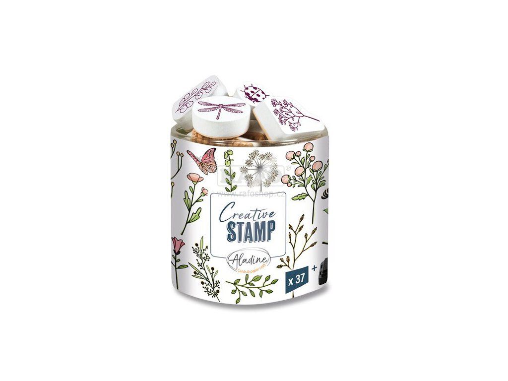 Kvalitní gumová razítka Stampo Scrap s motivem Jarní louka na pěnové hmotě. Razítka mají hluboký reliéf a precizně propracované detaily. Sada obsahuje 37 ks razítek v balení a 1 černý inkoustový polštářek na papír. Razítka mají všestranné použití na nejrůznější další projekty: skvěle se obtiskávají do keramiky, modelovacích/polymerových a dalších hmot. Jejich grafika se v hmotách naplno rozehraje. Pokud použijete textilní razítkovací polštářek, můžete nazdobit látky z přírodních vláken (bavlna, len, hedvábí).Doplňkové parametry