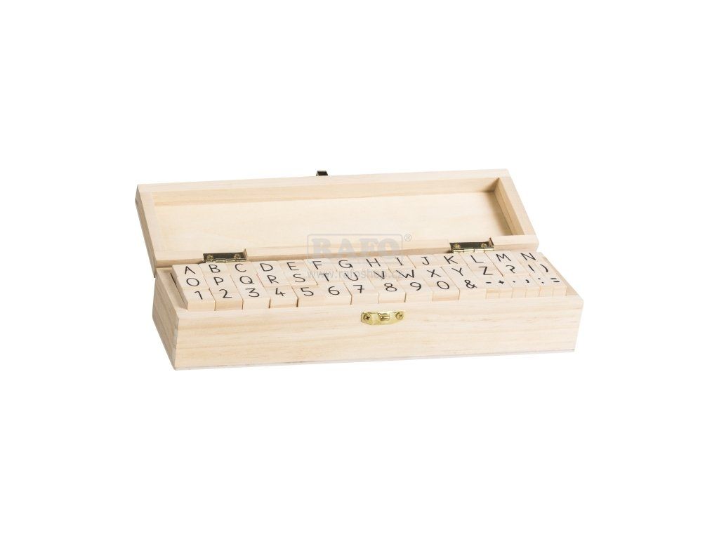 Sada razítek v dřevěném boxu - abeceda a číslice, 42 ks