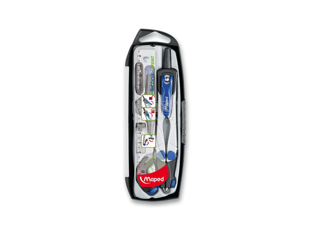 Maped Technic Concept - sada s technickým kružítkem. 5dílná sada: kružítko Technic Concept, univerzální držák, nástavec pro tuhu 0,5 mm, balení tuh, šroubovák.Doplňkové parametry