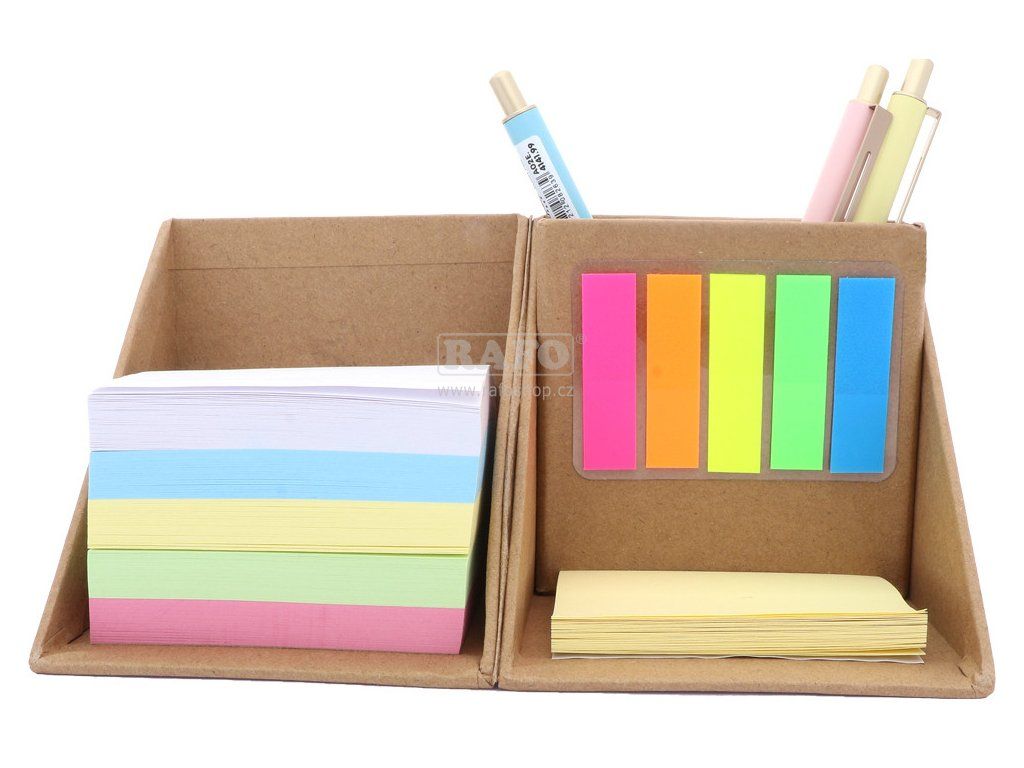 Lepící papírky v obalu z recyklovaného papíru, se stojánkem na psací potřeby, eco friendly.Doplňkové parametry