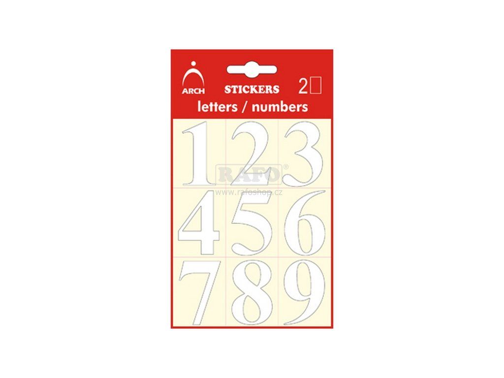 Samolepicí čísla 0-9, výška 3,8 cm. Každé číslo je v sadě 2x - dohromady tedy 20 čísel.Doplňkové parametry