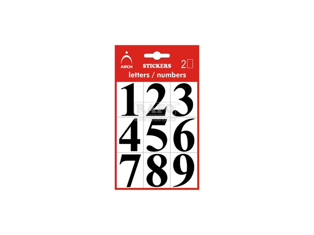 Samolepicí čísla 0-9, výška 3,8 cm. Každé číslo je v sadě 2x - dohromady tedy 20 čísel.Doplňkové parametry