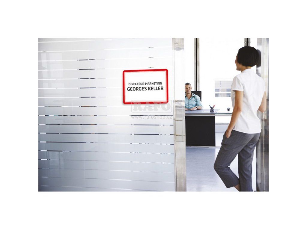 Nový design: užší a ostřejší rámeček pro oboustranné zviditelnění důležitých informací v kancelářích, obchodech, horeca a průmyslu. Antireflexní PVC se samolepicí zadní plochou drží na hladkém povrchu - ideálně skle výloh apod. Snadná a spolehlivá fixace dokumentu magnetickými lemy ze všech stran, široké otevření, umístění na výšku i šířku. Balení obsahuje 2 ks. Elegantní a zároveň praktické kapsy A4 Magneto s natištěným rámečkem v různých barvách, jsou zcela otevřeny - dokumenty v nich uložené dají snadno vyměňovat a uzávěr kapsy tvoří magnetický proužek, který zaručuje stabilní polohu dokumentu po jeho uložení, kapsy jsou ohebné, lze je připevnit i na oblé plochy, samolepicí provedení.Doplňkové parametry
