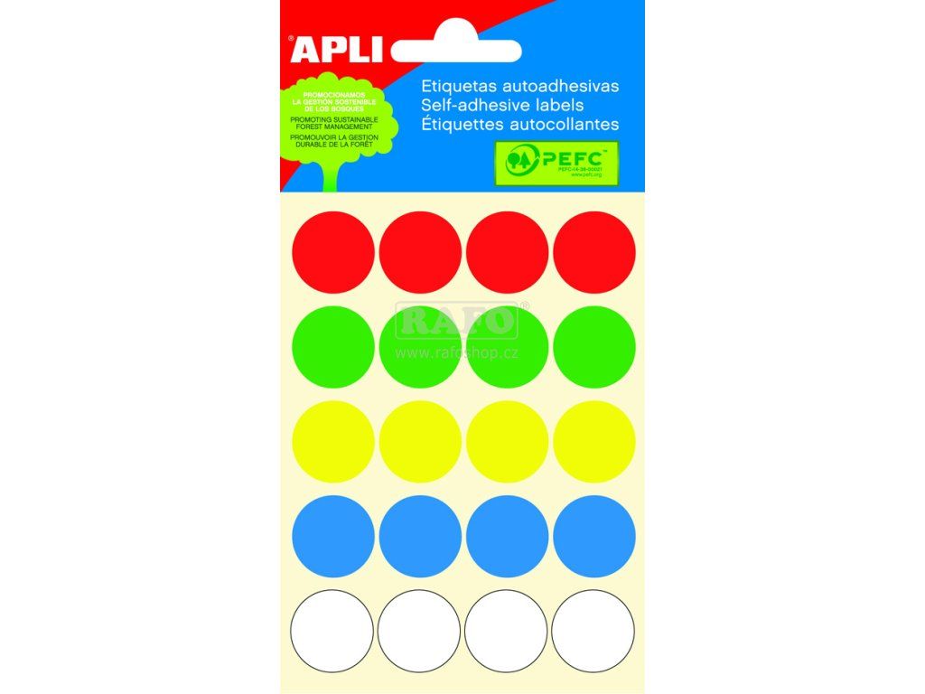 Samolepicí štítky Apli, barevná kolečka, 19 mm, 100 ks