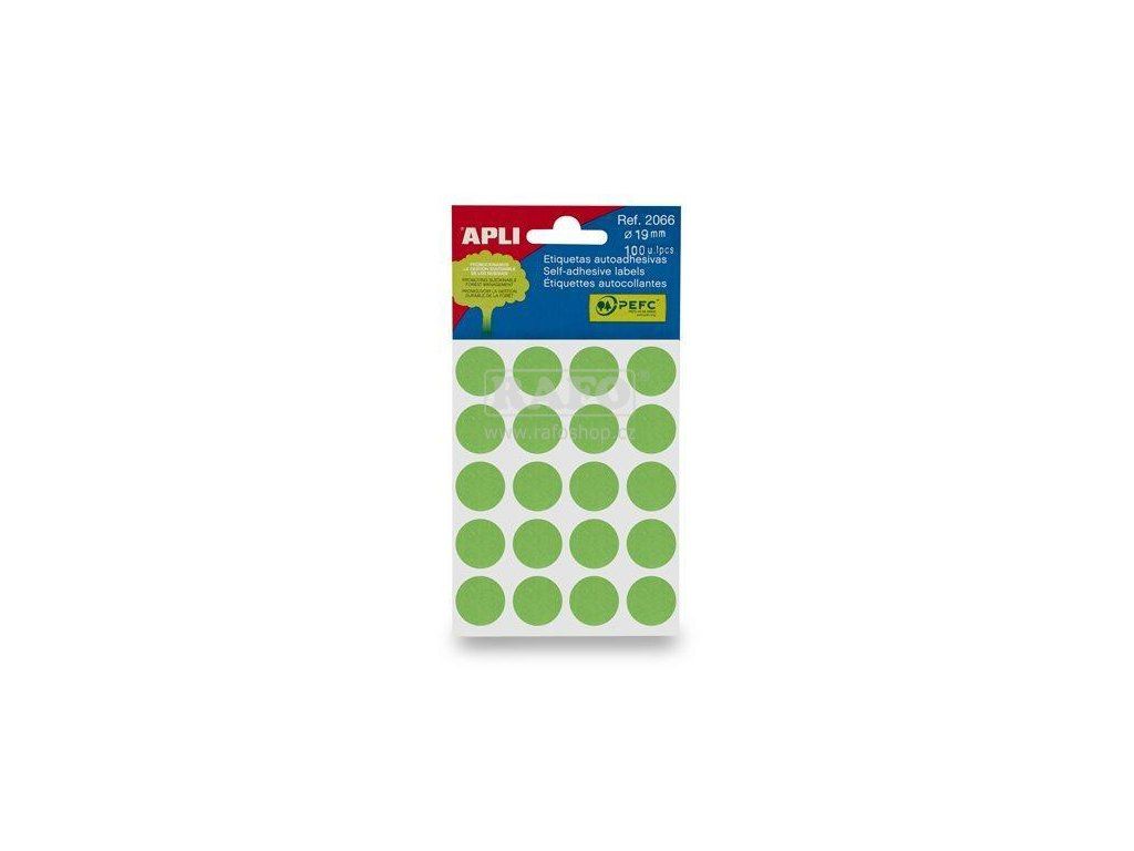 Samolepicí štítky Apli, zelená kolečka, 19mm, 100ks