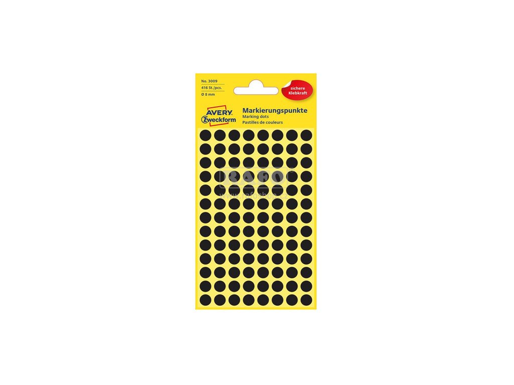 Kulaté samolepící etikety s permanentním lepidlem značky Avery Zweckform pro jednoduché a přehledné označování, uspořádání nebo naplánování. Skvěle se hodí například pro plánování rozvrhu, směn nebo dovolených. Etikety snadno popíšete běžným fixem, nejsou určeny pro tisk v tiskárnách. Balení obsahuje 4 archy po 104 etiketách, celkem 416 kusů. Průměr: 8 mm.Doplňkové parametry