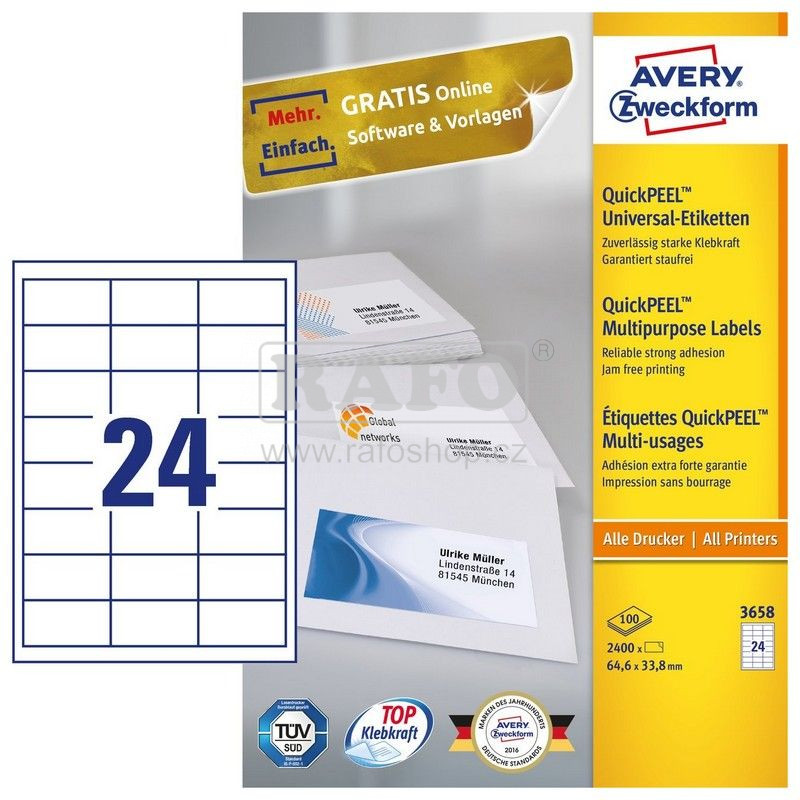 Samolepicí štítky Zweckform, 3658, 64.6x33.8mm, 100 archů A4