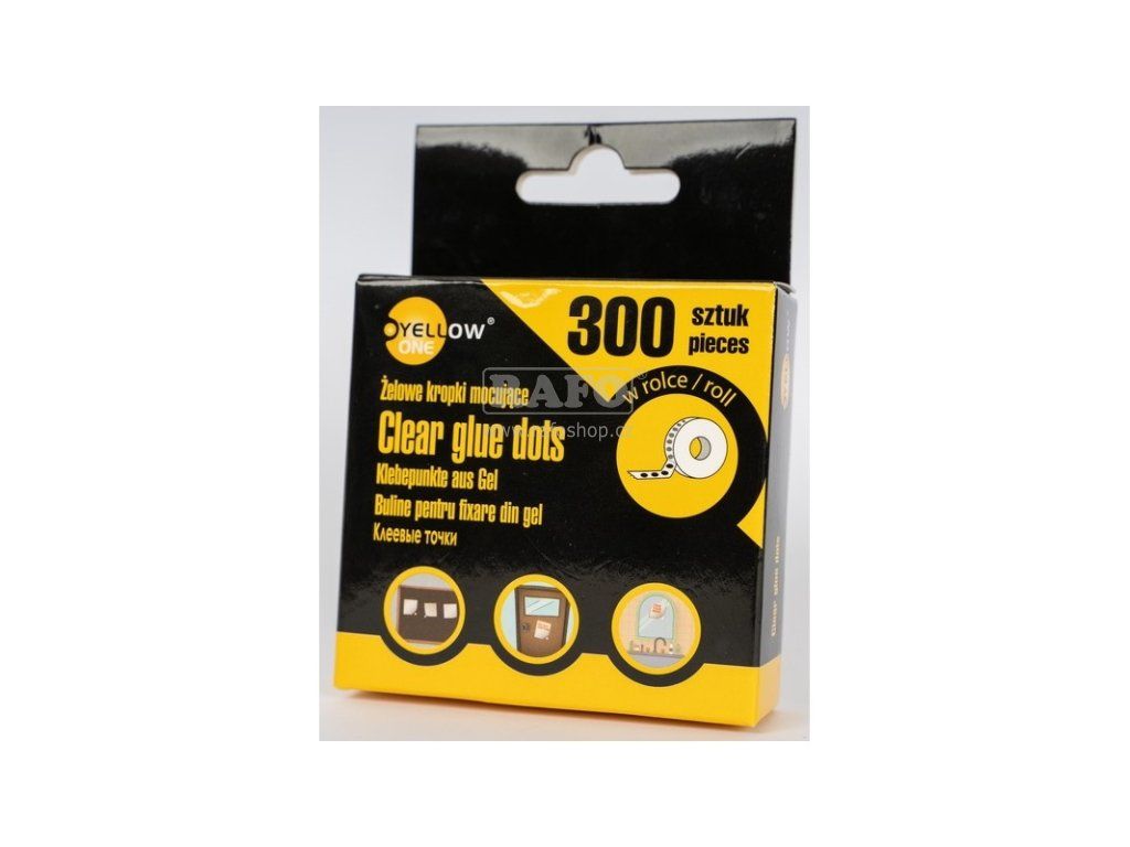 Univerzální samolepicí tečky, oboustranné, transparentní, průměr 10 mm, 300 ks na pásce. Lze využít pro lepení plakátů, kosmetických vzorků, fotek apod.Doplňkové parametry