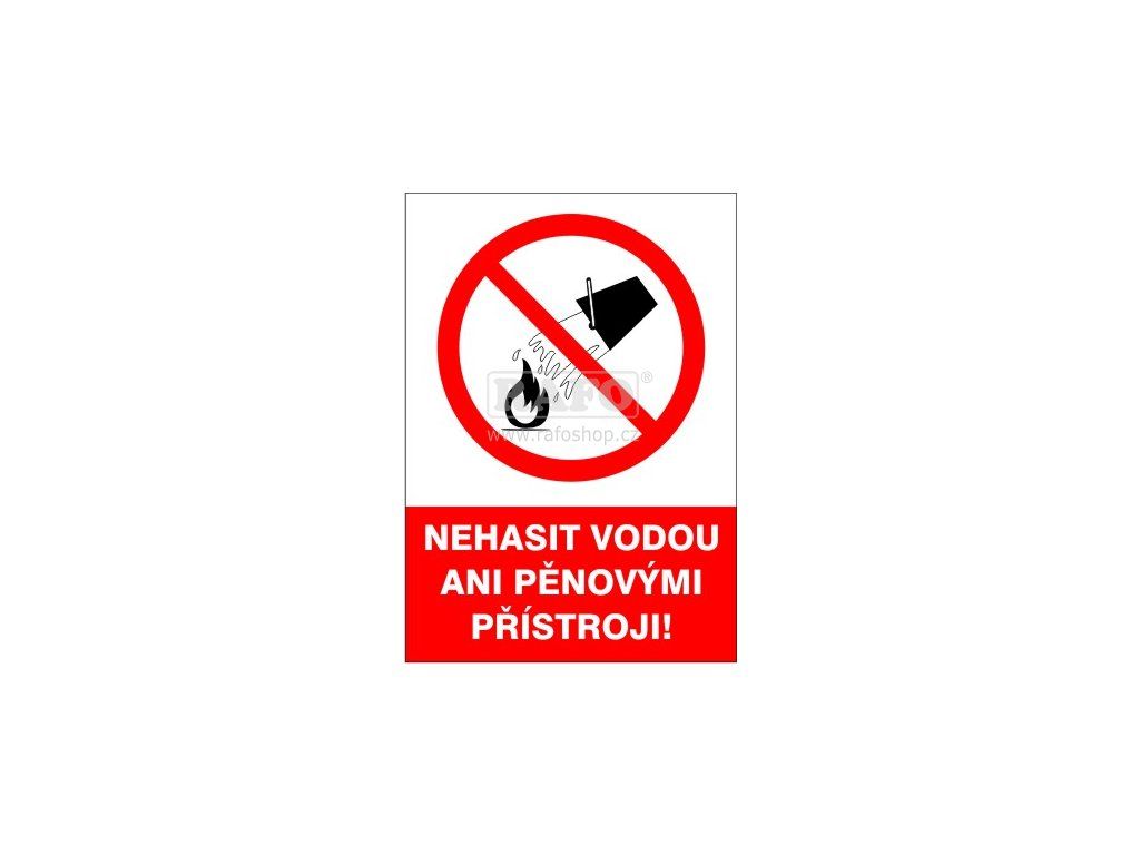 Samolepka Nehasit vodou ani pěnovými přístroji!, A4
