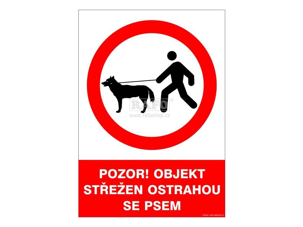 Samolepka Pozor! Objekt střežen ostrahou se psem, A4
