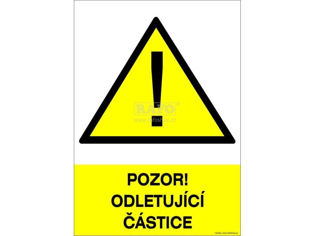 Samolepka Pozor! Odletující částice, A4