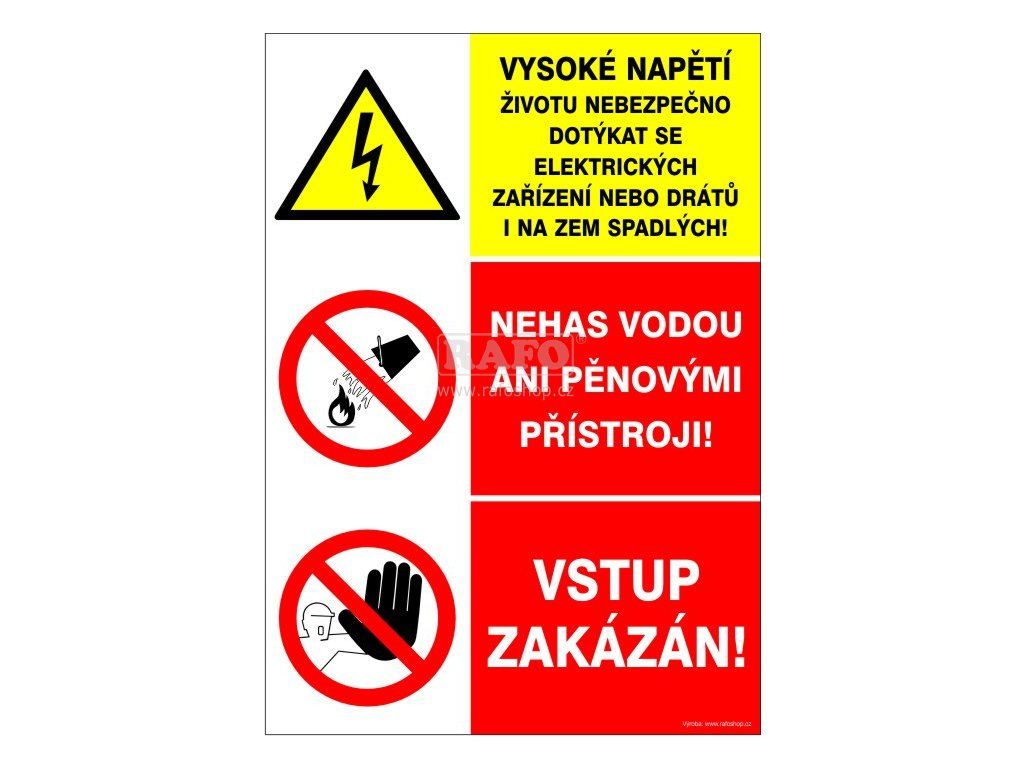 Samolepka Vysoké napětí / Nehas vodou / Vstup ..., A5