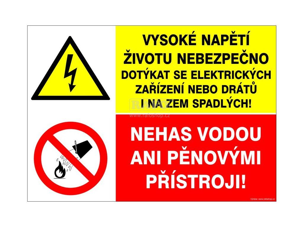 Samolepka Vysoké napětí / Nehas vodou ani pěno..., A5