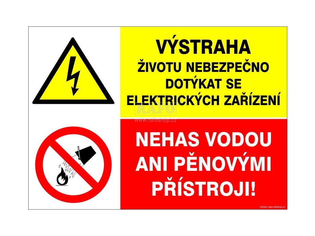 Samolepka Výstraha / Nehas vodou ani pěnovými ..., A5