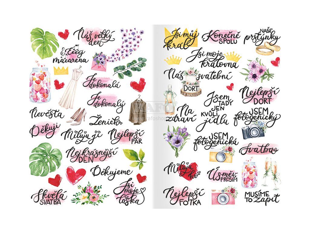 Exkluzivní samolepkový sešit s názvem Svatební album dodá Vašemu fotoalbu ten správný šmrnc. S našimi krásnými designy můžete ozdobit každou stránku alba a zachytit tak nezapomenutelné okamžiky Vašeho velkého dne. Každá samolepka je pečlivě navržená a vyrobená s láskou, aby podtrhla jedinečnost svatební atmosféry. Dejte albu tu správnou finální podobu!Doplňkové parametry