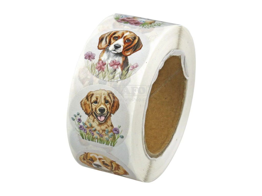 500 papírových samolepek na roli 8 motivů psů – detailní, roztomilé ilustrace Průměr samolepky: 25 mm Šířka pásky: 27 mm Snadné použití – rychlé odlepování Praktické balení vhodné do školy, kanceláře i domácí dílnyDoplňkové parametry