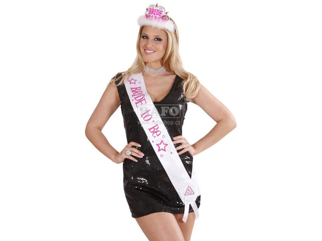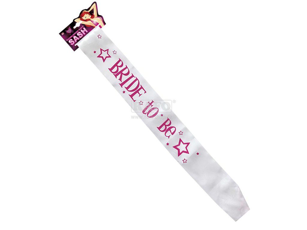 Bílá saténová šerpa s růžovým nápisem BRIDE TO BE pro prozloučení se svobodou. Materiál: 100% polyesterDoplňkové parametry