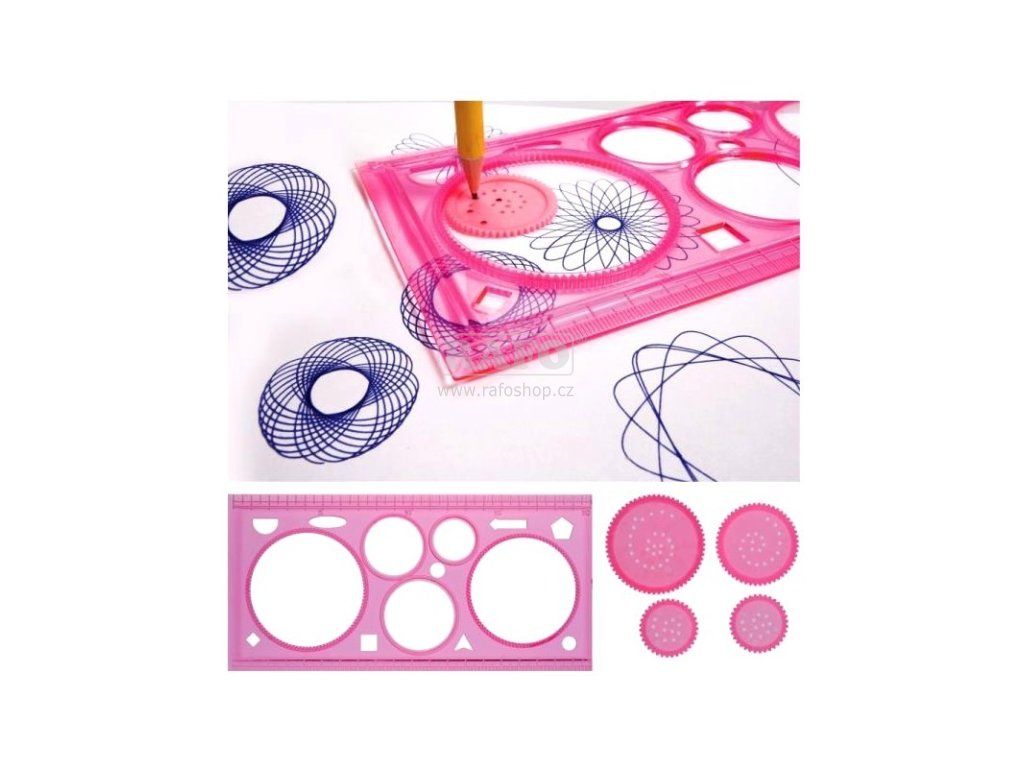 Šablony na kreslení a malování pro děti rozvíjející dětskou tvořivost, kombinační schopnosti a jemnou motoriku. Obsahuje také 20 cm pravítko. S pomocí šablon a ozubených kol se děti naučí rýsovat a tvořit nejrůznější vzor. Vhodné pro originální tvoření či výrobu a následné barvení mandal. Spirograph pro kreslení barevných spirál vás vrátí do dětství nebo vaše děti si s ním užijí neuvěřitelné hodiny zábavy při kreslení mandal a různých barevných spirál.Doplňkové parametry