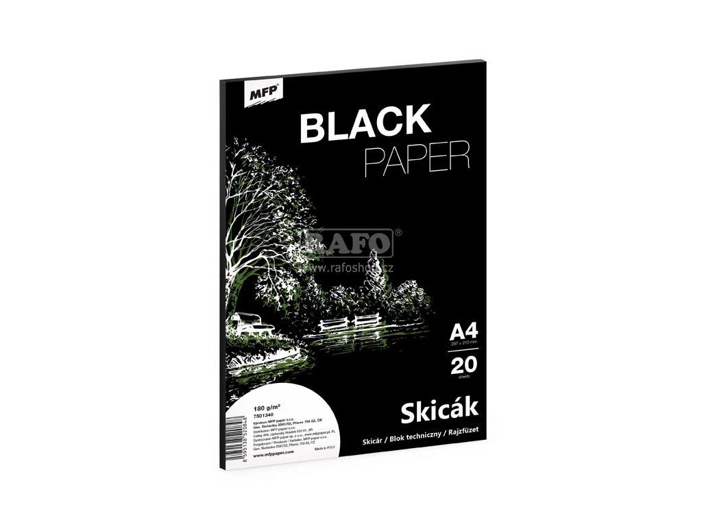 Skicák ve formátu A4 s černými listy, trhací. Na černém podkladu dostane Vaše kresba úplně nový rozměr. Vhodný pro kreslení gelovými pery, pastelkami, pastely, temperovými barvami nebo metalickými popisovači. Formát: A4 Počet listů: 20 listů Gramáž: 180 g/m2Doplňkové parametry
