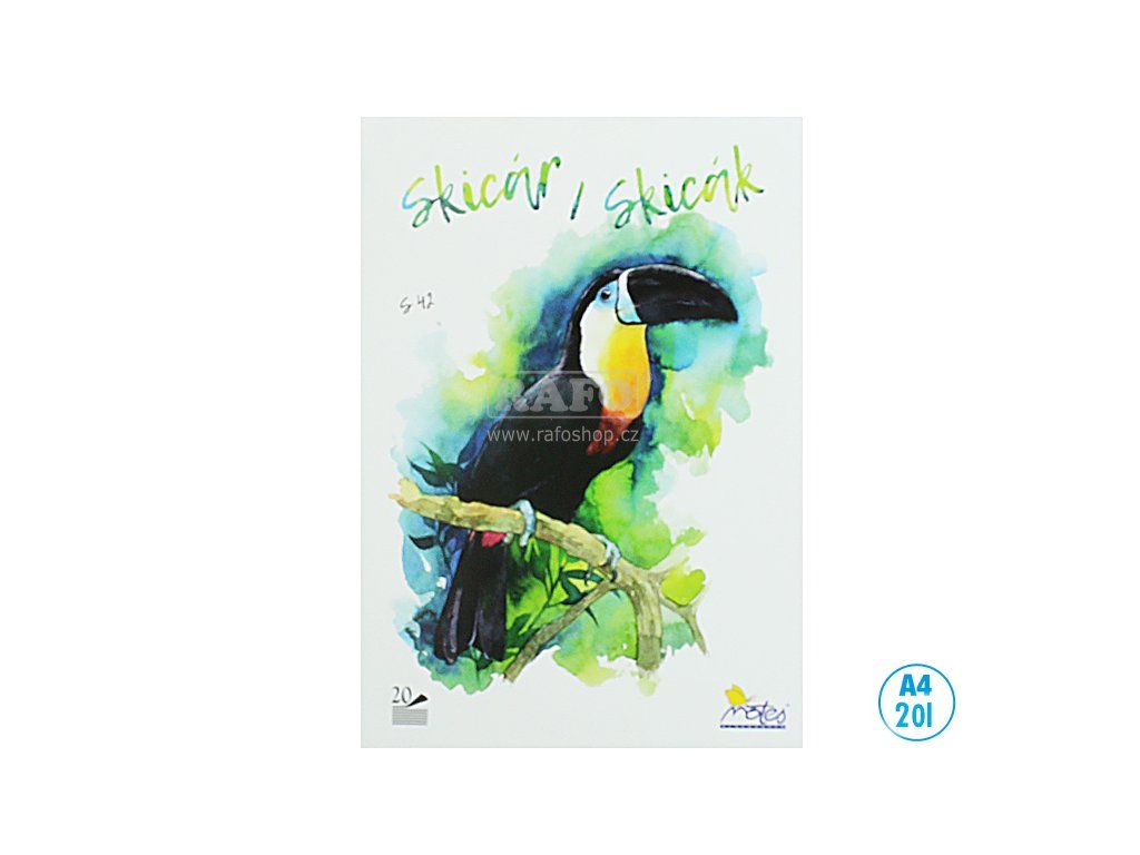 Skicák z výkresového kartónu, lepený, podlepený šedou lepenkou. Formát: A4. Počet listů: 20. Gramáž: 180g. Vhodný pro prvňáčky.Doplňkové parametry