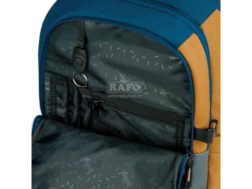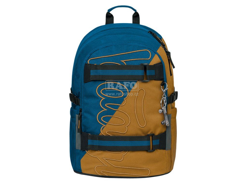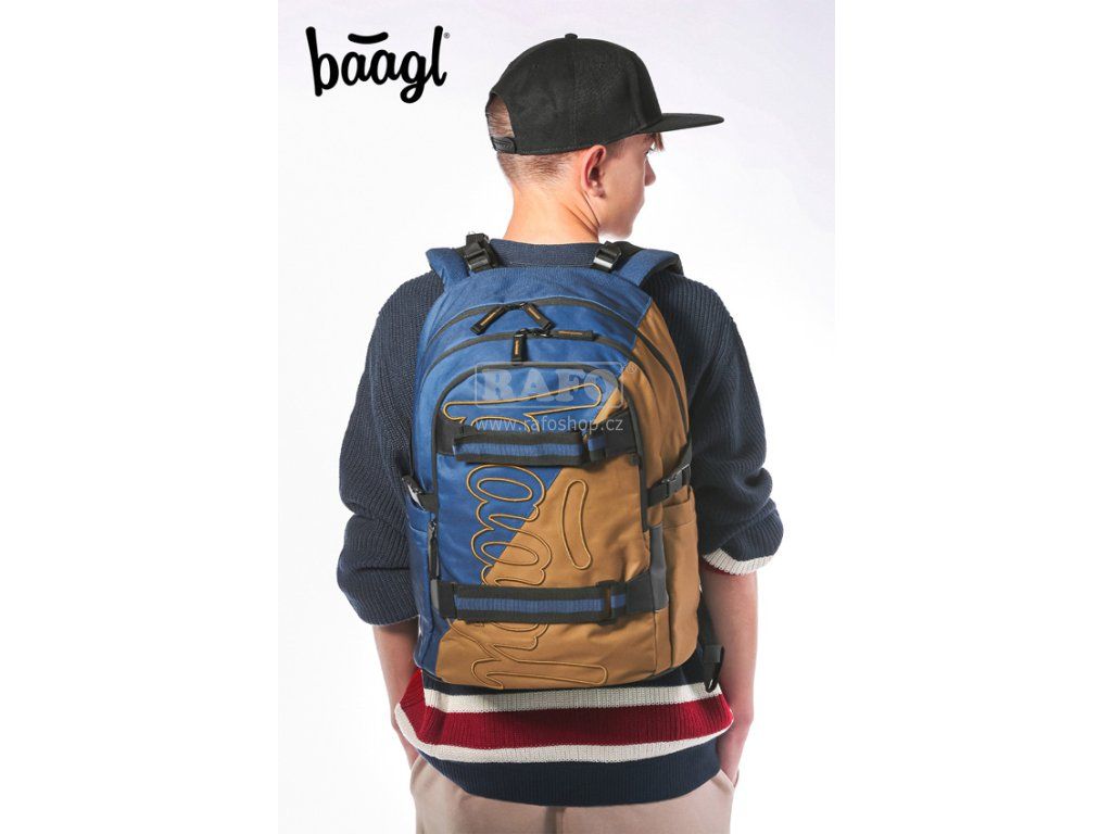 Karamelovo–modrý batoh Skate s logem BAAGL, anatomicky tvarovaným zádovým systémem a popruhy na uchycení skateboardu je ideální pro děti od 3. třídy ZŠ • Populární model Skate, s hmotností nepřesahující 900 g a popruhy na uchycení skateboardu, je ideální pro žáky již od třetí třídy ZŠ. • Anatomicky tvarovaná záda s výztuží v oblasti beder a plně nastavitelné kompresní popruhy umožňují optimální přizpůsobení postavě. • Batoh Skate je vybaven třemi samostatně uzavíratelnými komorami, vnitřním organizérem a polstrovanou kapsou na 15palcový notebook nebo tablet. • Batoh z recyklovaného, voděodolného materiálu je opatřen řadou reflexních prvků pro maximální bezpečnost dítěte i za snížené viditelnosti. • Batoh Skate disponuje spolehlivými zipy prestižní japonské značky YKK. • Postranní kapsy, ideální například na tritanové láhve BAAGL, jsou vyrobeny z pevného materiálu sladěného s designem batohu. • Ke každému batohu lze pořídit další produkty ve stejném designu, takže jej snadno sladíte s penálem, sáčkem na obuv a dalšími školními pomůckami. • Součástí batohu je také stylový přívěsek. • Batoh Skate splňuje podmínky Institutu pro testování a certifikaci (ITC) ve Zlíně a nezávislé laboratoře QIMA. Rozměr: 290 x 430 x 200 mm.Doplňkové parametry