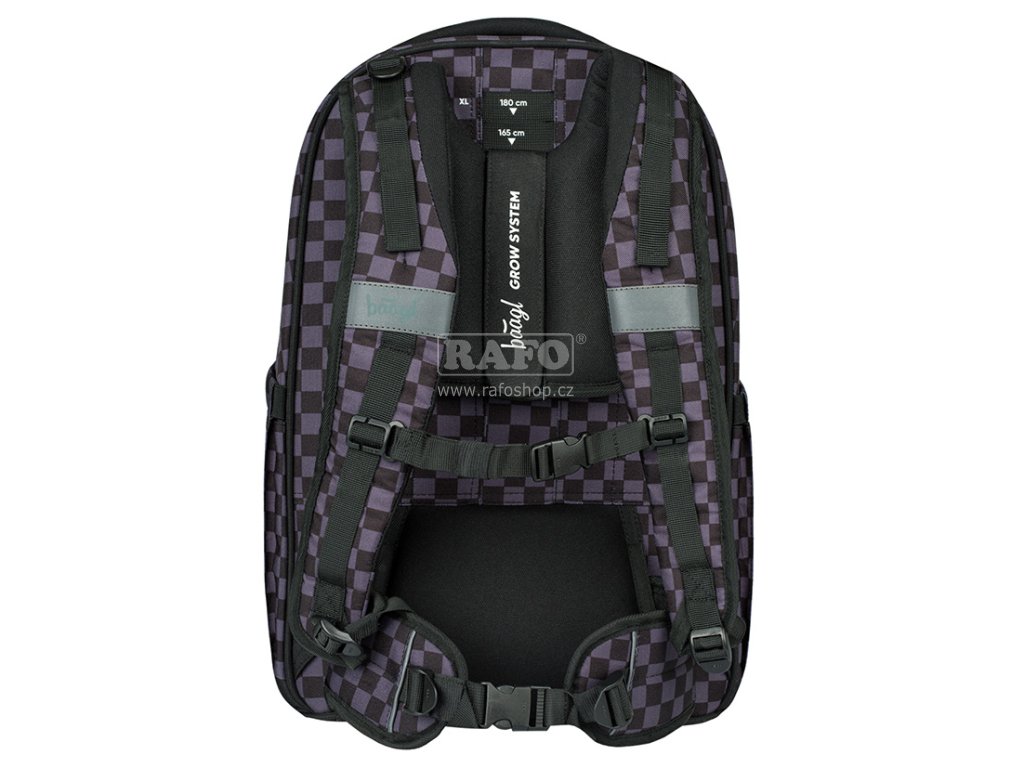 • Lehký batoh s hmotností pouhých 1150 g je vybaven posuvným zádovým systémem, který umožňuje nastavení až na čtyři různé velikosti. • Kompaktní batoh Skate Max je ideální pro žáky a studenty od 155 do 185 cm, což odpovídá přibližně 3. třídě ZŠ a výše. • Batoh z recyklovaného, voděodolného materiálu je opatřen řadou reflexních prvků pro maximální bezpečnost dítěte i za snížené viditelnosti. • Disponuje odnímatelným bederním pásem a díky speciální výztuži z EVA pěny perfektně drží tvar. • Zesílené ucho batohu navíc zvyšuje jeho nosnost až na 8 kg. • V místech, kde se ramenní popruhy mohou dotýkat krku, je jemná síťovina na spodní straně mírně vytažena do svrchní části, což zajišťuje ochranu krku. • Tříkomorový organizér zahrnuje speciální kapsu na notebook z jemného sametového materiálu, který chrání elektroniku před poškrábáním. • Praktické dvoucestné zipy YKK umožňují snadný a rychlý přístup k obsahu batohu. • Postranní kapsy, ideální například na tritanové láhve BAAGL, jsou vyrobeny z pevného materiálu sladěného s designem batohu. • Součástí batohu je také stylový přívěsek. • Skate Max splňuje podmínky Institutu pro testování a certifikaci (ITC) ve Zlíně a nezávislé laboratoře QIMA. Rozměr: 300 x 470 x 220Doplňkové parametry