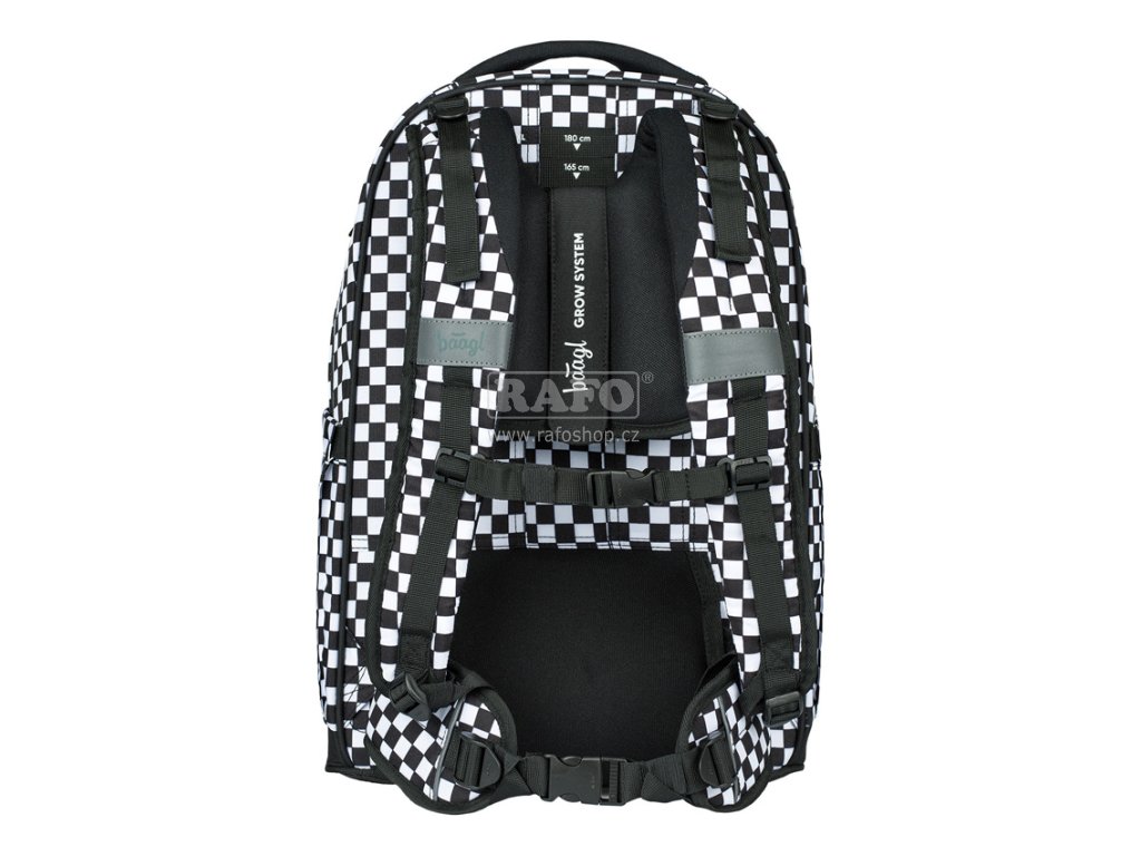 • Lehký batoh s hmotností pouhých 1150 g je vybaven posuvným zádovým systémem, který umožňuje nastavení až na čtyři různé velikosti. • Kompaktní batoh Skate Max je ideální pro žáky a studenty od 155 do 185 cm, což odpovídá přibližně 3. třídě ZŠ a výše. • Batoh z recyklovaného, voděodolného materiálu je opatřen řadou reflexních prvků pro maximální bezpečnost dítěte i za snížené viditelnosti. • Disponuje odnímatelným bederním pásem a díky speciální výztuži z EVA pěny perfektně drží tvar. • Zesílené ucho batohu navíc zvyšuje jeho nosnost až na 8 kg. • V místech, kde se ramenní popruhy mohou dotýkat krku, je jemná síťovina na spodní straně mírně vytažena do svrchní části, což zajišťuje ochranu krku. • Tříkomorový organizér zahrnuje speciální kapsu na notebook z jemného sametového materiálu, který chrání elektroniku před poškrábáním. • Praktické dvoucestné zipy YKK umožňují snadný a rychlý přístup k obsahu batohu. • Postranní kapsy, ideální například na tritanové láhve BAAGL, jsou vyrobeny z pevného materiálu sladěného s designem batohu. • Součástí batohu je také stylový přívěsek. • Skate Max splňuje podmínky Institutu pro testování a certifikaci (ITC) ve Zlíně a nezávislé laboratoře QIMA. Rozměr: 300 x 470 x 220Doplňkové parametry
