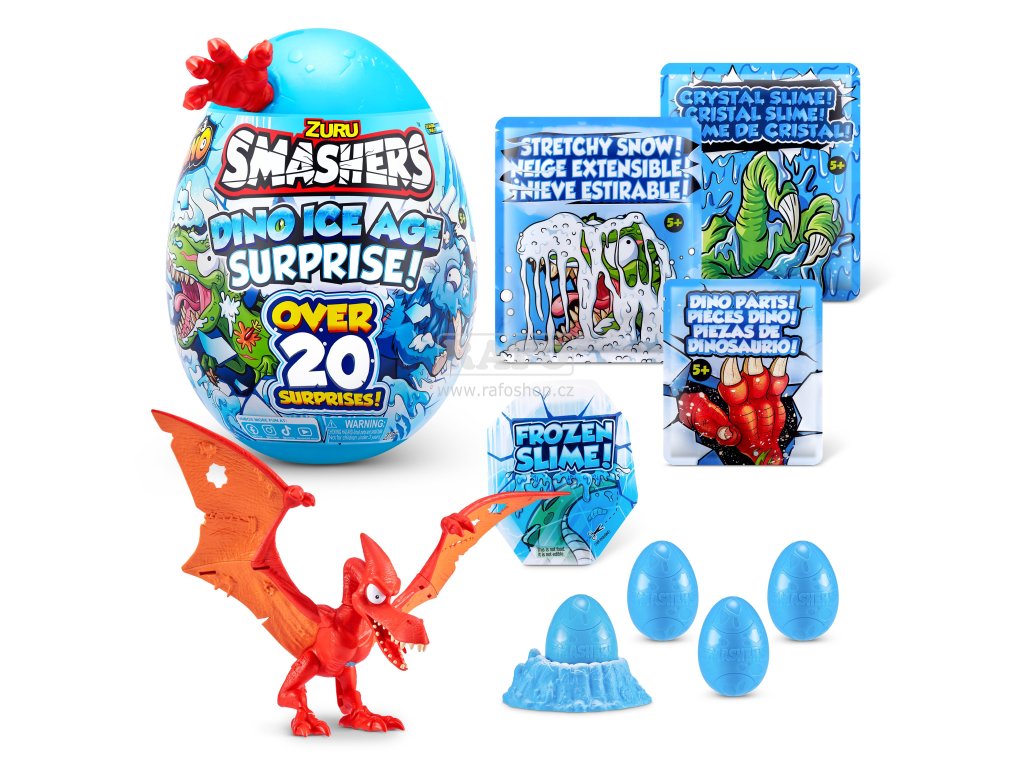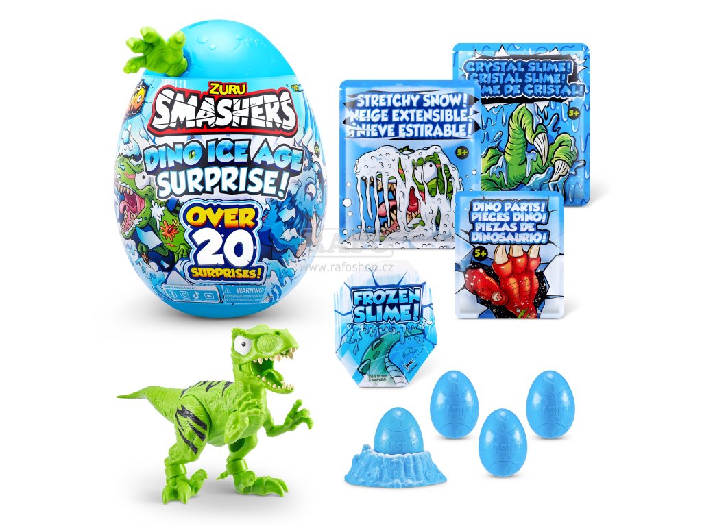 Obsah balení: 1x dinosauří vejce, 1x sáček na zmražení, 1x stírací mapa, 3x hmota, 4x mini smashers vejce, 1x dinosaurus, 1x podstavec