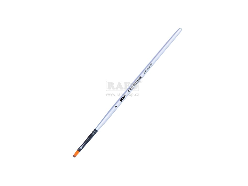 Štětec plochý syntetický s jemným vlasem tvarovaným do špičky a dřevěnou rukojetí. Díky syntetickým vláknům usnadňuje roztírání barev a dobře drží tvar. Vlákno je elastické a vyniká vysokými absorpčními schopnostmi. Je méně náchylný k poškození barvami a ředidly než štětec přírodní. Je také výrazně odolnjěší proti poškození či lámaní. Snadno se udržuje v čistotě, a proto vykazuje delší životnost. Hodí se jak pro školní využití, tak i pro různé malířské techniky a povrchy. Ideální pro malování detailů, tenkých linek nebo vybarvování.Doplňkové parametry