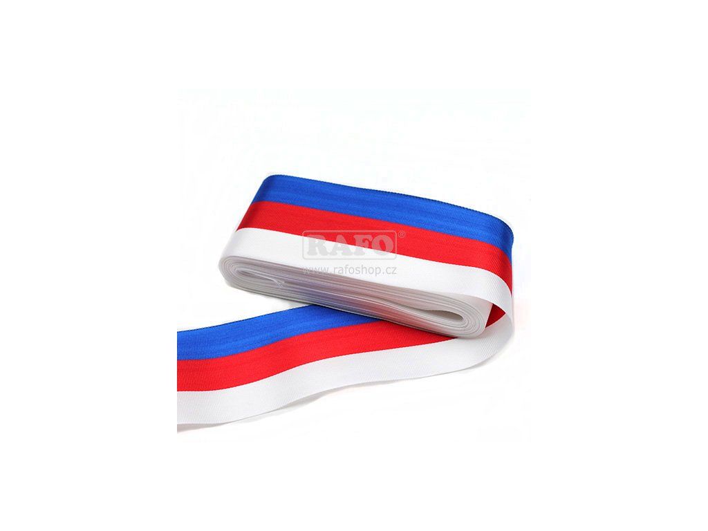 Stuha trikolora šíře 70 mm, materiál 100% PES, v balení 10 m. Stuha trikolóra je využívána k výrobě státních vyznamenání, řádů, věnců a darů, které se předávají při významných státních svátcích a událostech. Tyto stuhy využívají k aktivitám také regiony, města a sportovní kluby.Doplňkové parametry