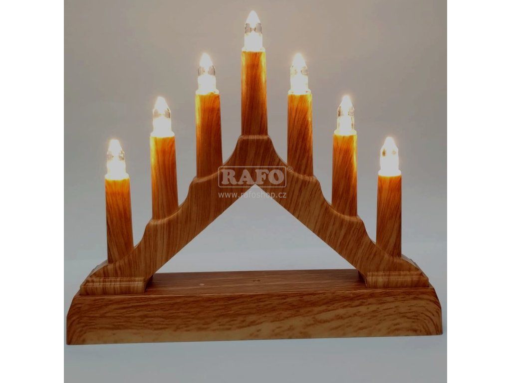 Svícen pyramida 7 LED svíček, imitace dřeva