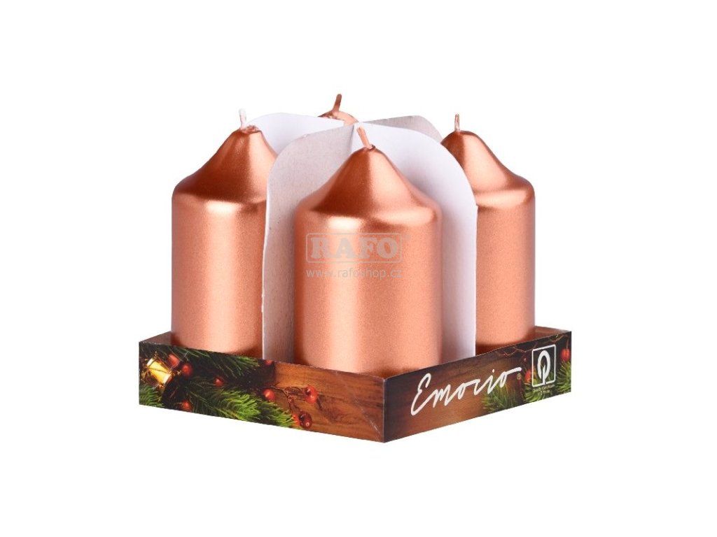 Svíčka válec metalická měděná, 4 ks