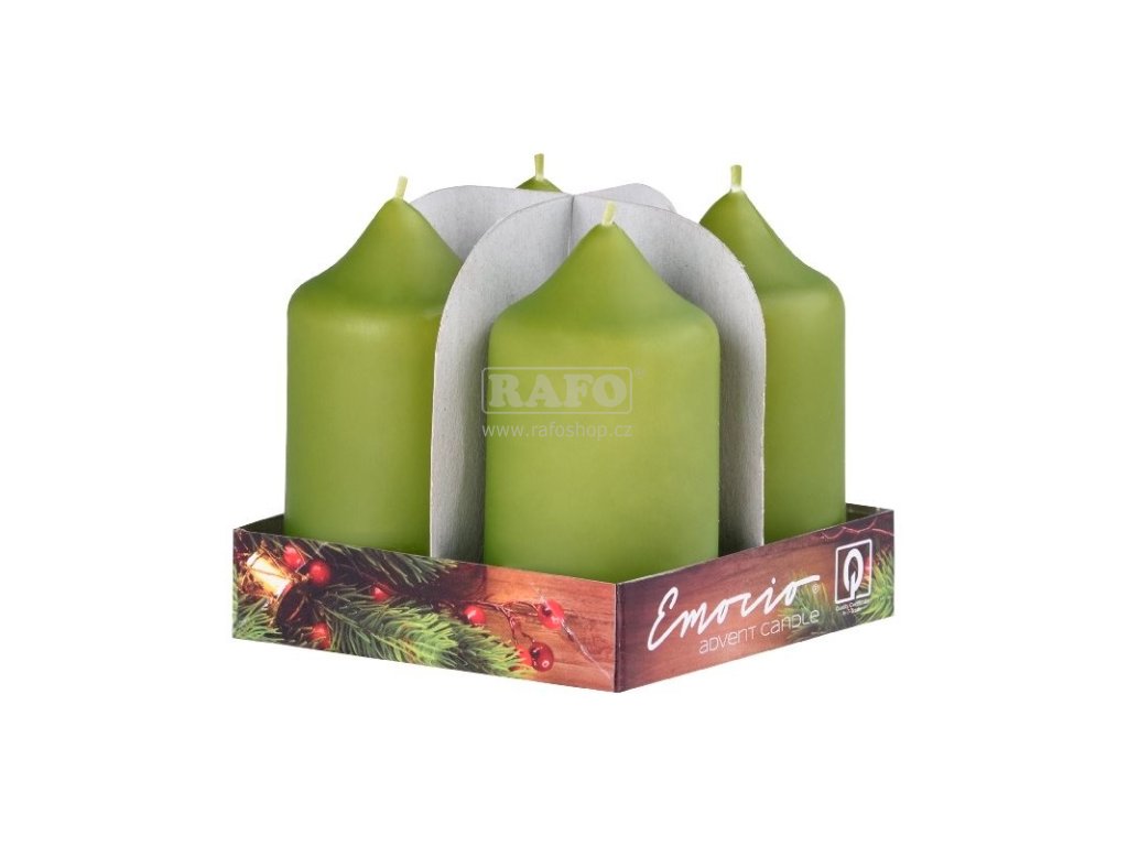 Adventní svíčky. Výška 8 cm, průměr 4 cm. V balení 4 ks.Doplňkové parametry