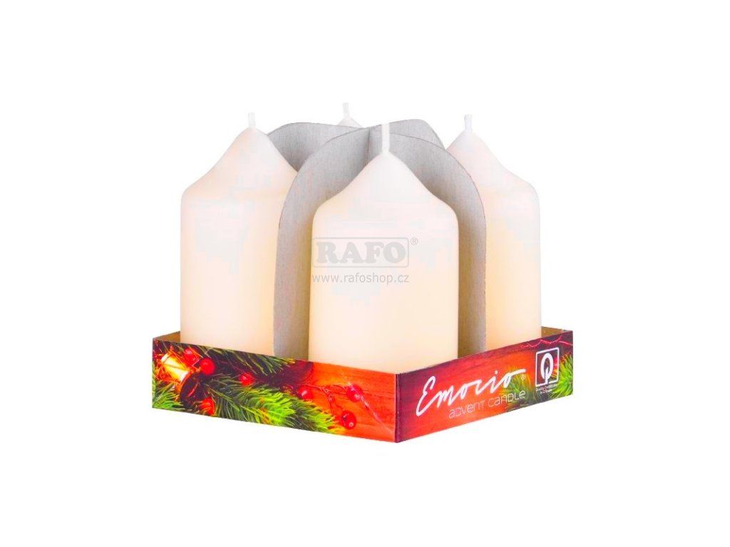 Adventní svíčky, výška 7,5 cm, průměr 4 cm, v balení 4 ks.Doplňkové parametry