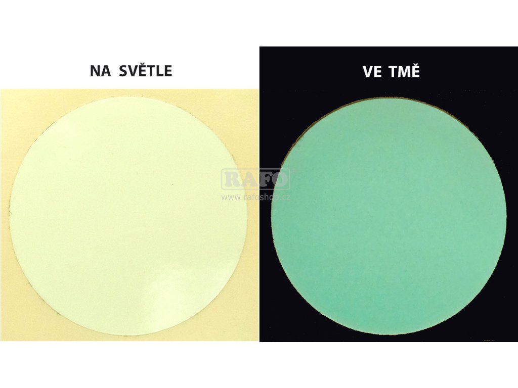 Materiál: fotoluminiscenční samolepicí fólie. Potřebujete-li jiný formát této samolepky nebo ji jinak upravit, napište nám na zakazky@rafo.czDoplňkové parametry