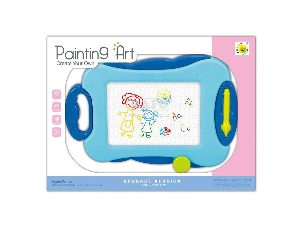 Magnetická kreslící tabulka je skvělou volbou pro rozvoj kreativity. Děti si mohou na tuto tabulku, s pomocí přiložené tužky, libovolně kreslit dle své fantazie. Ke smazání namalovaných obrázků slouží posuvná guma. Rozměry balení 355 x 265 x 31 mm.Doplňkové parametry