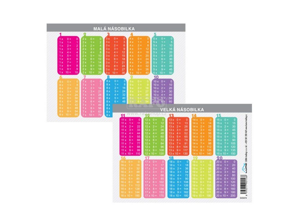 Tabulka malá a velká násobilka, A5. Papírová oboustranná pomůcka pro matematiku.Doplňkové parametry