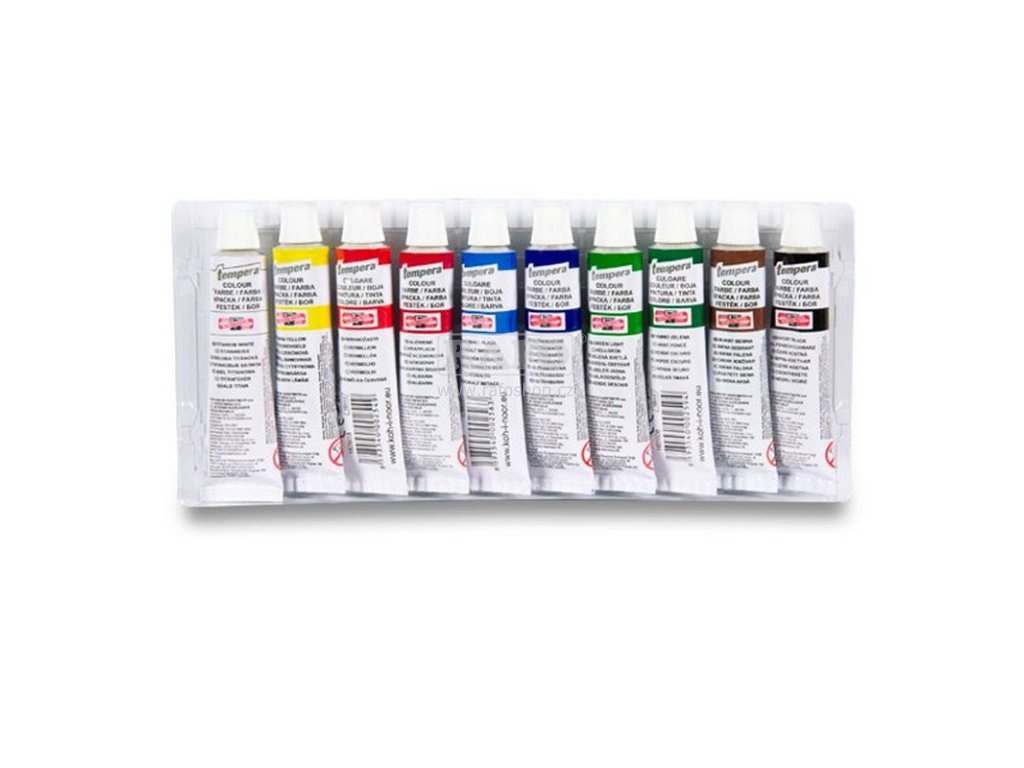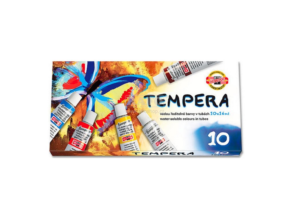 Temperové barvy jsou ředitelné vodou a mají vysoké krycí vlastnosti podobné akrylovým barvám, na rozdíl od nich lze však temperu po zaschnutí znovu rozmýt. Zasychají rychle a po zaschnutí jsou spíše matné a bohužel nepříliš světlostálé, zasychání lze však regulovat přísadami. Patří k ekonomické třídě barev.Temperové barvy se dostanou v tubách nebo kalíšcích, barvy z tub se míchají na dřevěných paletách. Tempery nejsou tak rozšířené jako olej nebo akryl a mnoho výrobců je nevyrábí. Můžeme s nimi malovat štětcem či použít špachtli, malovat hustou barvou či v barevných vrstvách, případně kombinovat s olejovými barvami. Jako podklad nám poslouží papír i dřevo. Sada obsahuje 10x16ml.Doplňkové parametry