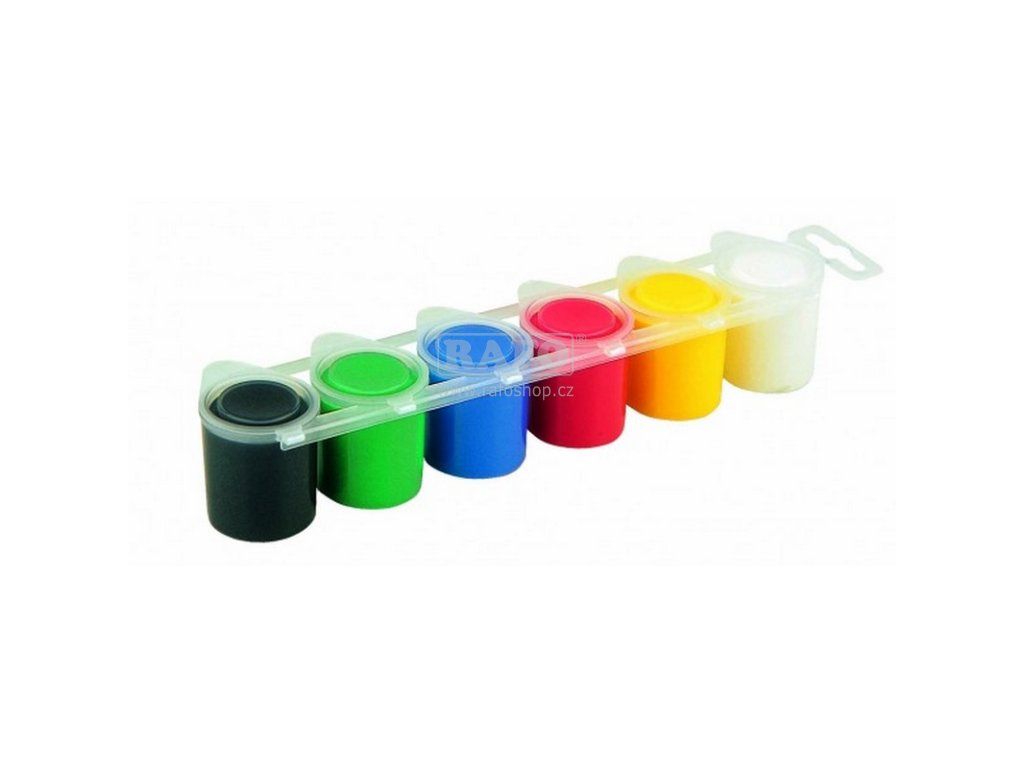 Sada temperových barev 6x25ml v jasných a zářivých odstínech s velkým množstvím pigmentu. Můžete naředit 1:1. Jednotlivé barvy se mohou překrývat /vrstvit/,ale vrstvy je nutno nechat dostatečně uschnout. Barvy lze snadno míchat pro širší škálu odstínů. Dobře smývatelné z většiny druhů tkanin.Doplňkové parametry