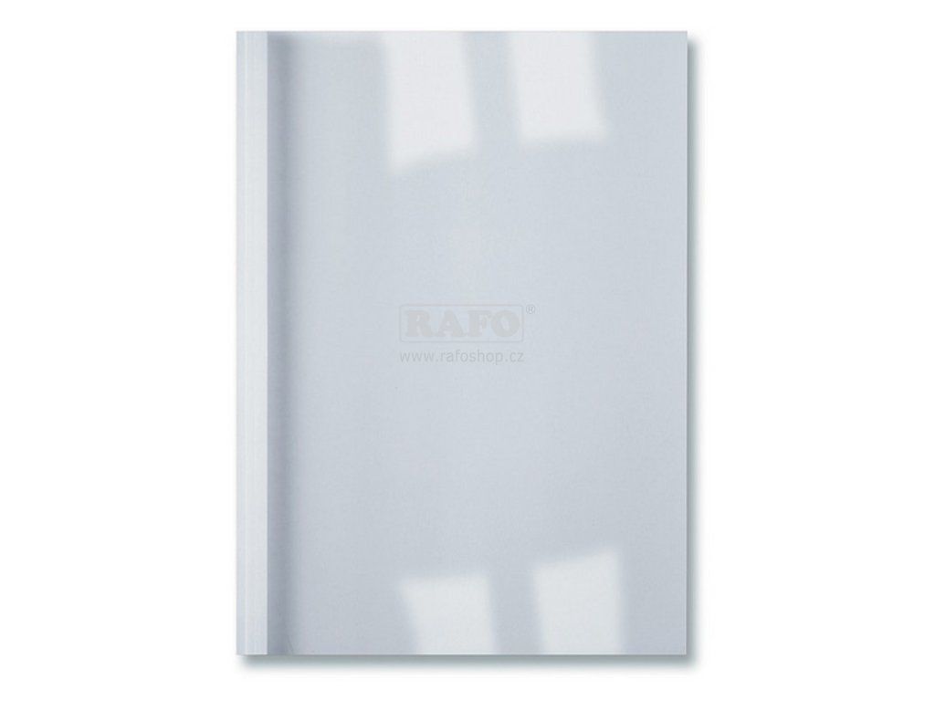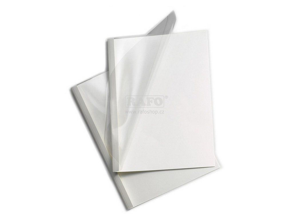 Desky pro termovazbu, bílé, šířka hřbetu 4 mm ( pro vazbu 40 listů) . Kombinace průhledné přední plastové fólie a zadní strany z papírového kartonu. Formát termodesek A4. Přední strana o tloušťce 150 mikronů je vyrobena z transparentního PVC pro viditelnost titulní strany. Zadní strana je vyrobena z lesklého papírového kartonu gramáže 215 g/m2.Doplňkové parametry