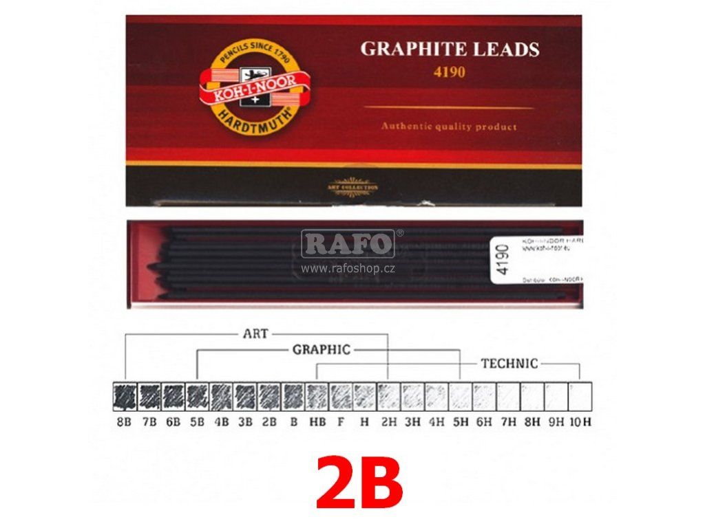 Grafitové tuhy nejvyšší kvality pro mechanické tužky ve 20 stupních tvrdosti o průměru tuhy 2mm. Jsou podle tvrdosti vhodné jak pro umělecké kreslení až po technické rýsování.Doplňkové parametry