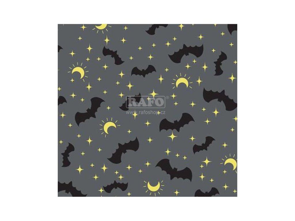 Třívrstvý papírový ubrousek. Krásné kvalitní ubrousky s motivem noční oblohy a netopýrů vykouzlí úžasnou atmosféru. Ideální na halloweenskou párty.Doplňkové parametry