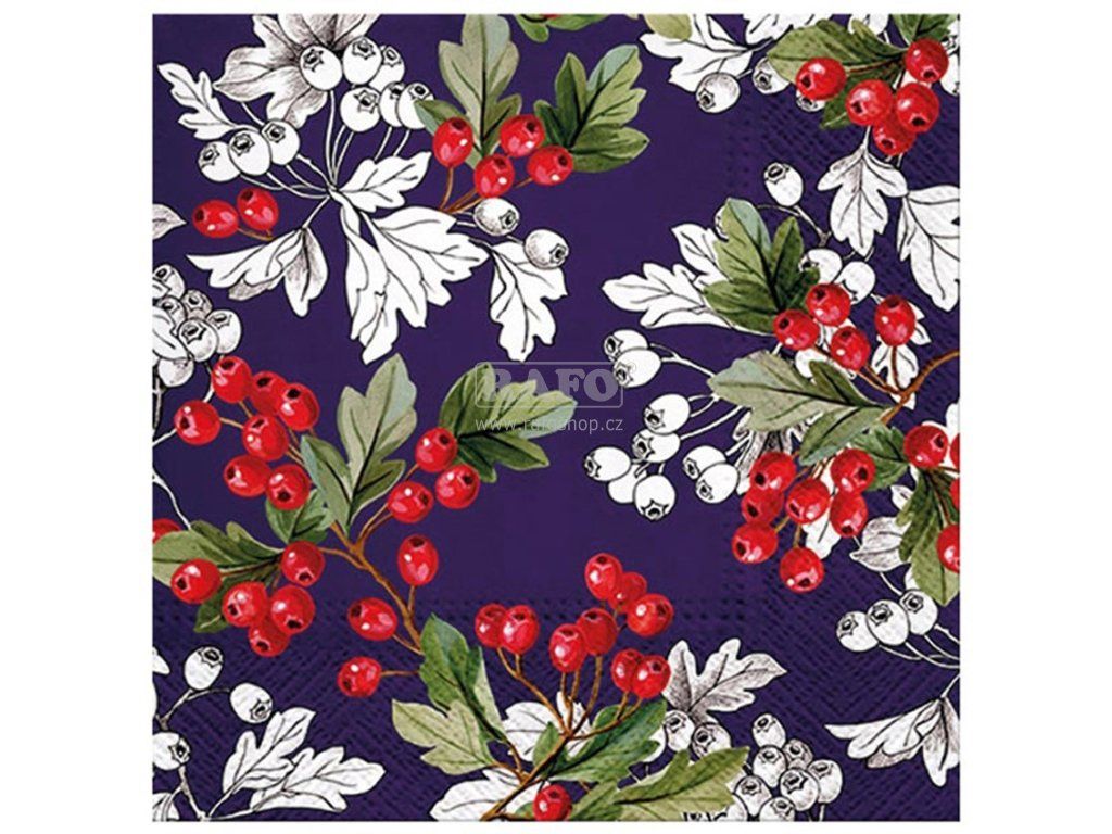 Ubrousky vánoční Jeřabiny, 33 x 33 cm, 20 ks