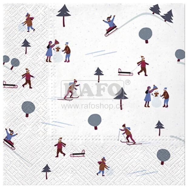 Papírové vánoční ubrousky. Kvalitní vánoční ubrousky z třívrstvého papíru s motivem zimních aktivit. Jsou krásným vánočním doplňkem, které zpestří vánoční prostírání a vykouzlí příjemnou atmosféru. V balení je 20 kusů ubrousků.
